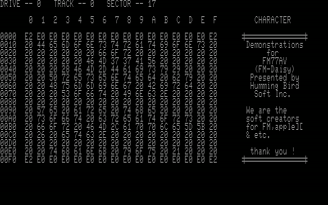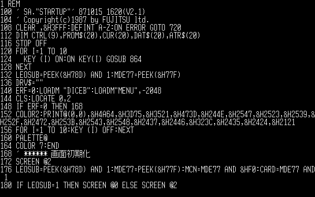 それからはまったく進展がなかったのですが、XM7開発者のたけがみりうさんから多くの情報をいただき、また、はせりんさんからも補足情報をいただきました。両氏によると、F-BASICのディスク上などに痕跡があり、これがコードネームを表わしているのではないか、とのことでした。とても興味深いものでしたので、ここにまとめてみました。