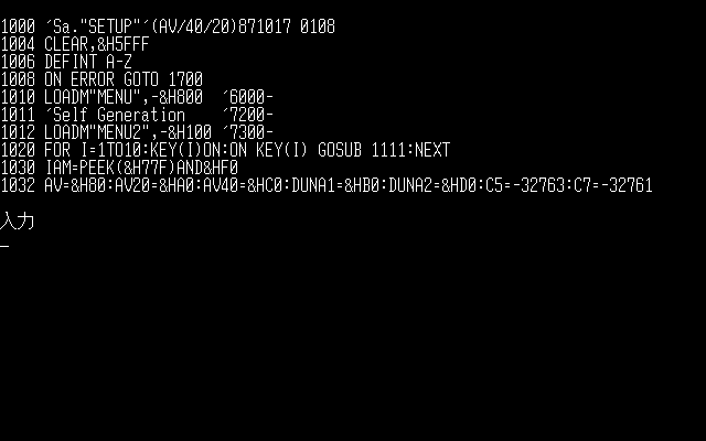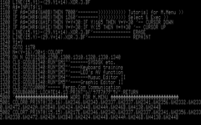 FM77AV20に付属の入門ディスクに収録されているM.MENU(メインメニュー)のリスト中に痕跡がある、とのことでした。