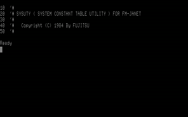 F-BASIC V3.0 L2.0のシステムディスクに収録されているSYSUTY(システム定数テーブルの設定を行なうプログラム)のリスト先頭のコメントにその名残がある、とのことでした。