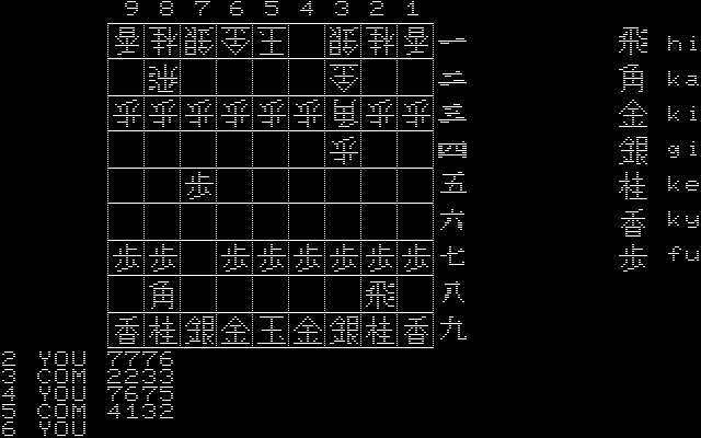 コンピューターと対局可能な将棋ゲーム。PC-6001版からの移植です。