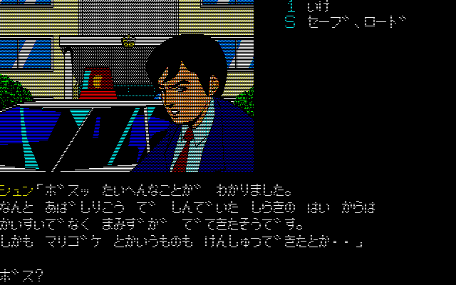 「ポートピア連続殺人事件」(エニックス)に続く堀井雄二氏の推理アドヴェンチャー。北海道を舞台に殺人事件の捜査を進めるというもので、部下の刑事とともに行動し、命令を与えるという点は「ポートピア~」と同様です。