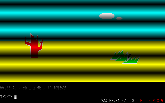 当時公開された映画「ブッシュマン」をモティーフにしたゲーム。ゲームの目的は映画同様、コーラビンを神様に返すこと。