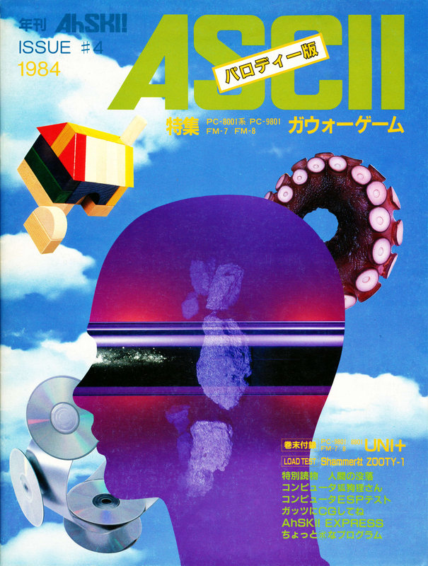 CATEGORYMAGAZINE アスキー パロディー版 1984年 書誌データ 通巻号数4 発行日1984年4月1日 掲載プログラム一覧 ガ・ウォーゲーム シミュレーション ぴあぱのらま館ふう4段重ねRGB分解グラフィック その他 関連ソフトウェア 月刊テープアスキー パロディー版 アスキー パロディー版 1984年