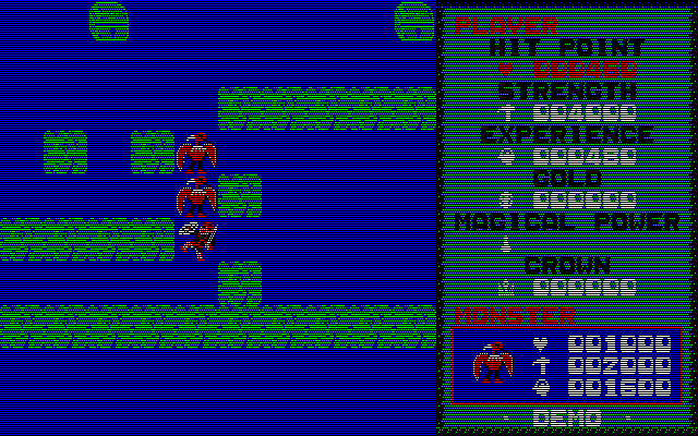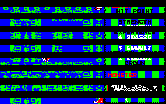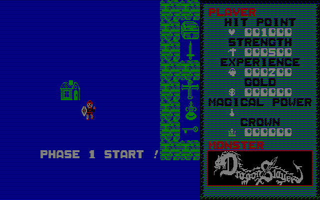 個人的にアクションロールプレイというのは好きではないのですが、唯一楽しめたといっていい存在がこのゲームでした。「前代未聞麻薬的爽快遊戯」というのがキャッチフレーズでしたが、本当に麻薬的な中毒性がありました。ただ欠点もいくつかあります。マップが広すぎる、息をつく暇もないほど敵が涌き出てくる、そしてテープ版の“セーヴができない”という点は辛すぎました。ディスク版の10面に比べ、テープ版は1面しかないのも残念でした。