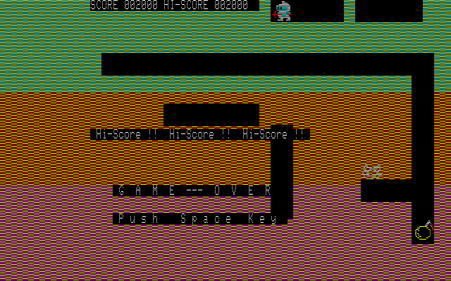「ディグダグ」そっくりのゲームですが、敵の動きが速く、すぐにやられてしまいます。岩はありませんが、爆弾を仕掛けることができます。