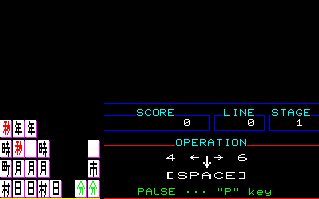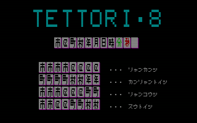 「テトリス」と麻雀を組み合わせたような落ちもの系パズルゲーム。グラフィック文字が字牌に見立てて使用されています。