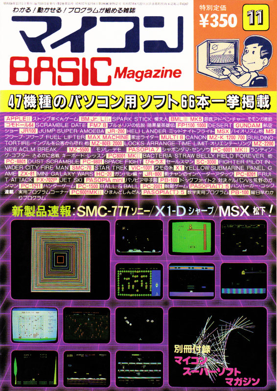 CATEGORYMAGAZINE マイコンBASICマガジン 1983年11月号 書誌データ 通巻号数31 発行日1983年11月1日 掲載プログラム一覧 プルメリアの伝説 アクション 暗黒星英雄伝 アクション