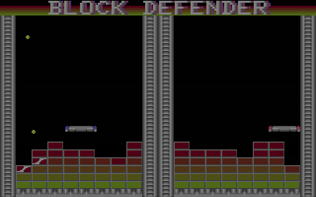FM77AVの4096色モードを活用し、マシン語を駆使した対戦型ブロック崩し。自分の陣地のブロックを消され、底にボールが当たったほうが負けというルールです。リアルタイムキースキャンを活用した2人対戦、またはコンピューターとも対戦可能です。