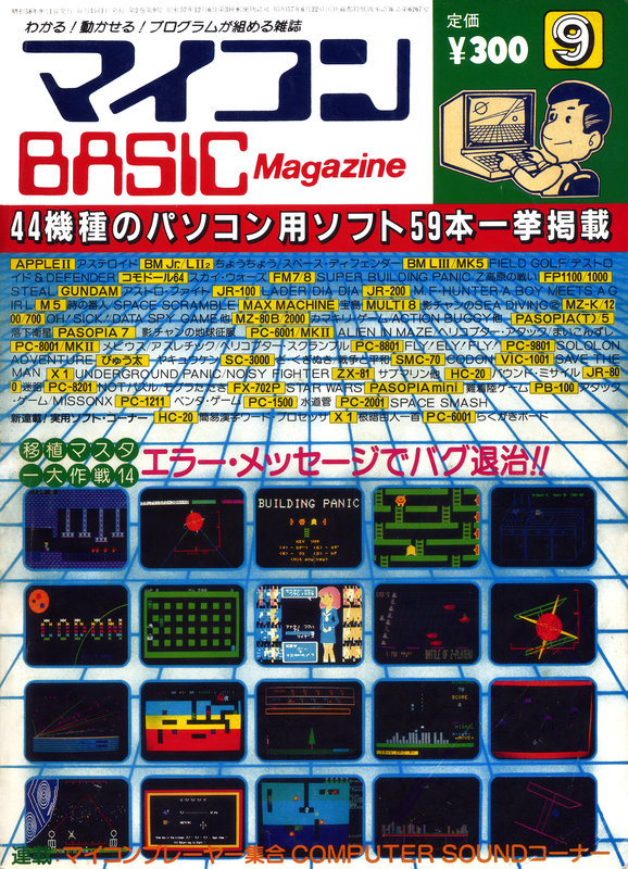 CATEGORYMAGAZINE マイコンBASICマガジン 1983年9月号 書誌データ 通巻号数29 発行日1983年9月1日 掲載プログラム一覧 SUPER BUILDING PANIC アクション Z高原の戦い アクション