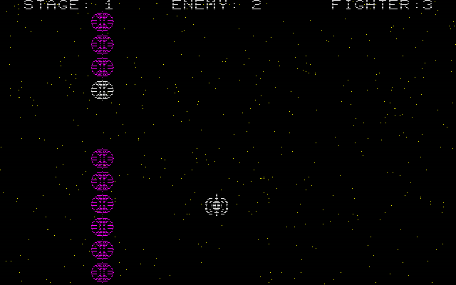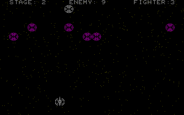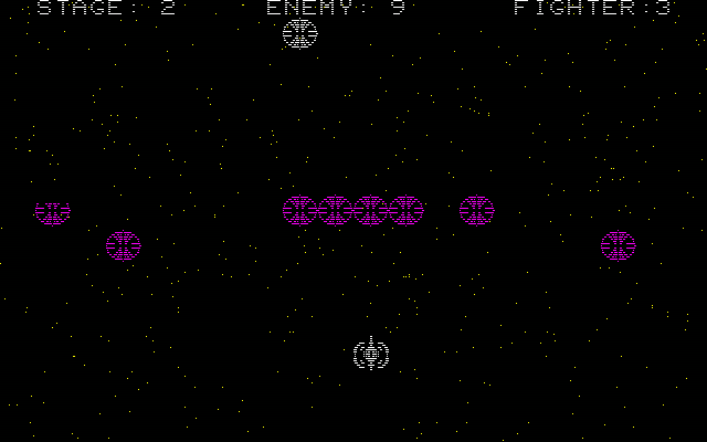 全5面のシューティングゲーム。1つだけいる白い敵を画面上のENEMYの数だけ当てると1面クリアー。