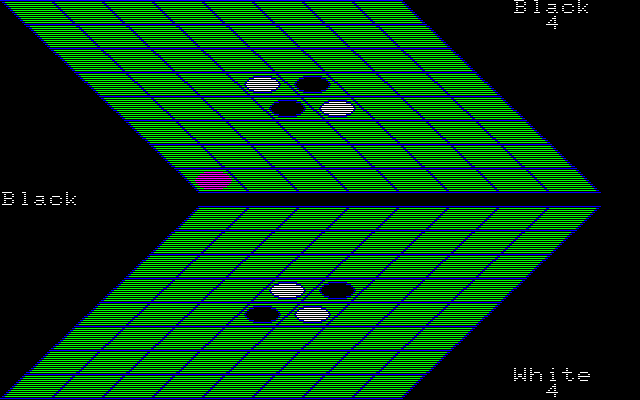 基本的にはオセロゲームですが、向かい合った2つのボードで行なうのが特徴。