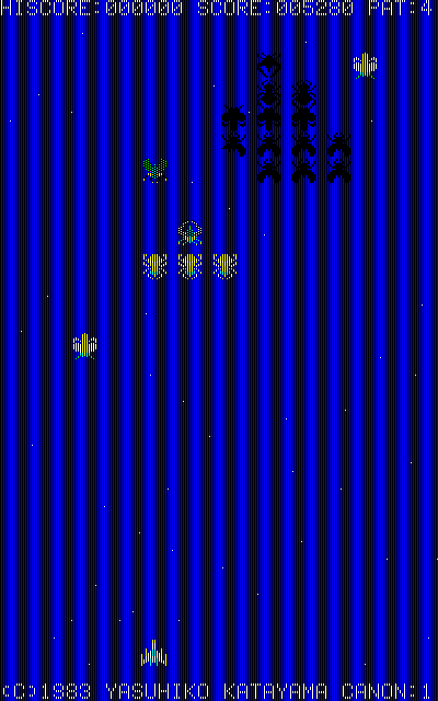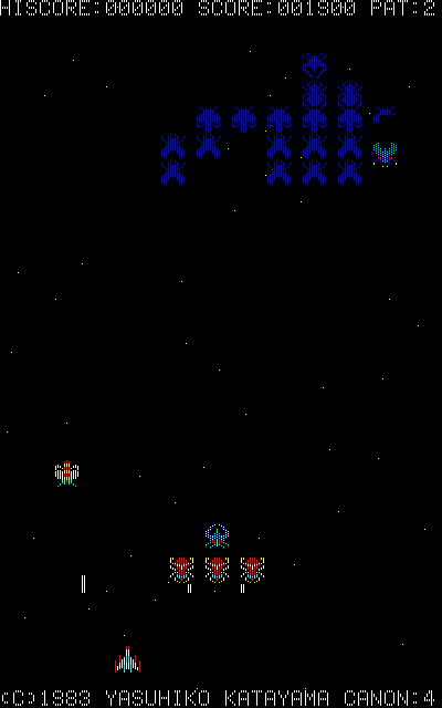 タイトルからもわかるように、「ギャラガ」に似たシューティングゲーム。珍しい縦画面ゲームでもあります。縦画面のシューティングゲームというとPC-9801の「ギャプラス」が有名ですが、それに先駆ける存在であったことになります。